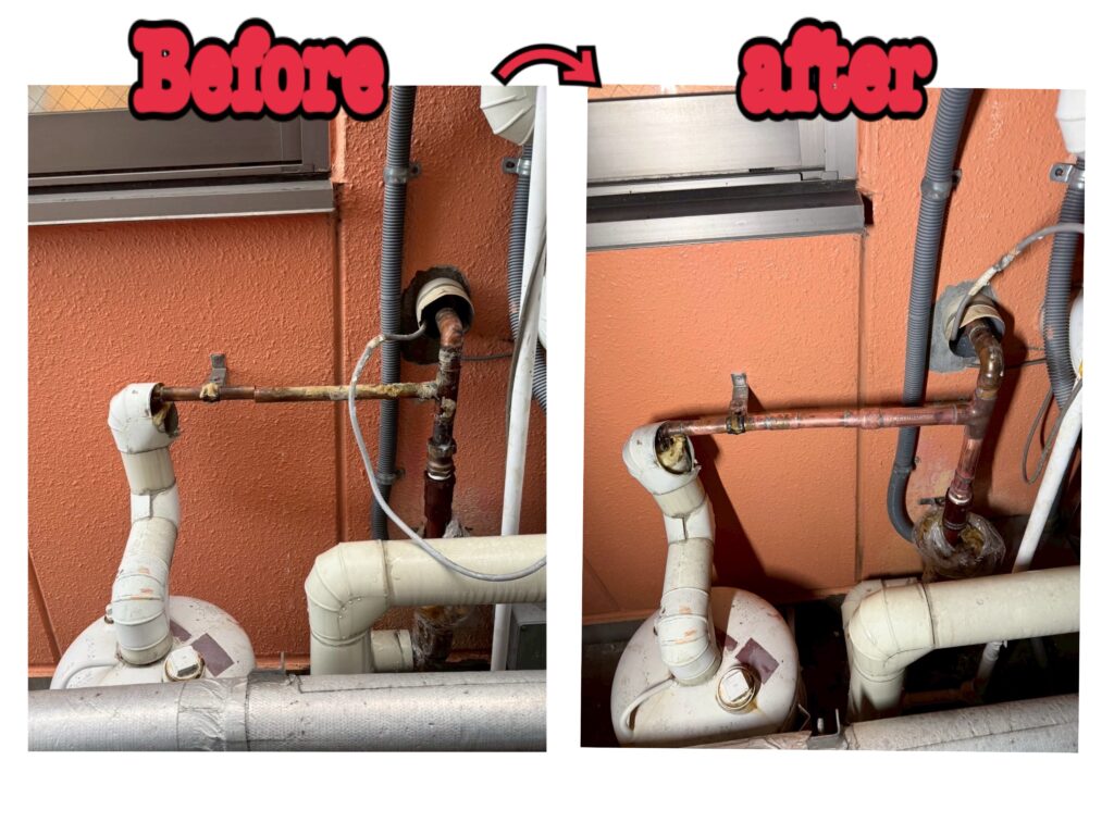 給水ポンプ入れ替え、銅管水漏れ修理、